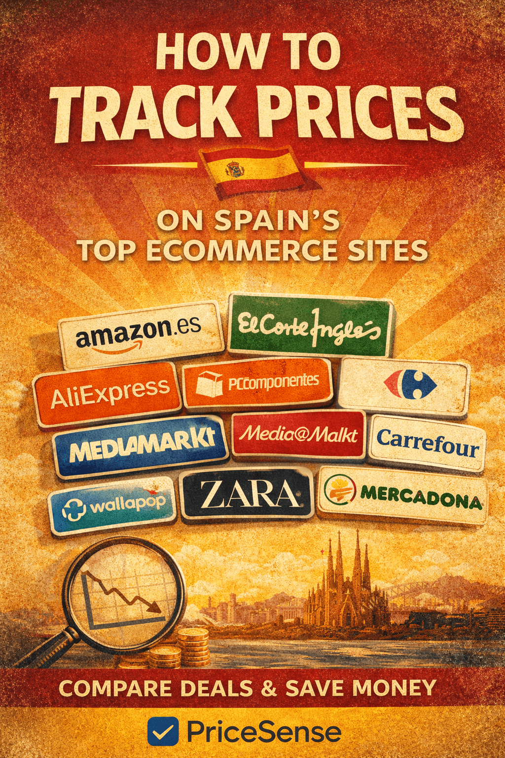 Learn how to track prices across Spain's biggest ecommerce platforms like Amazon.es, El Corte Inglés, PCComponentes, MediaMarkt, Zara, and more using PriceSense.